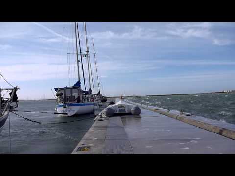 Here, on the other hand, is a video of us being beam to a Norther, with the fetch that builds in La Paz, at the new marina Vista Coral (formerly the Virtual Marina/Santa Cruz):